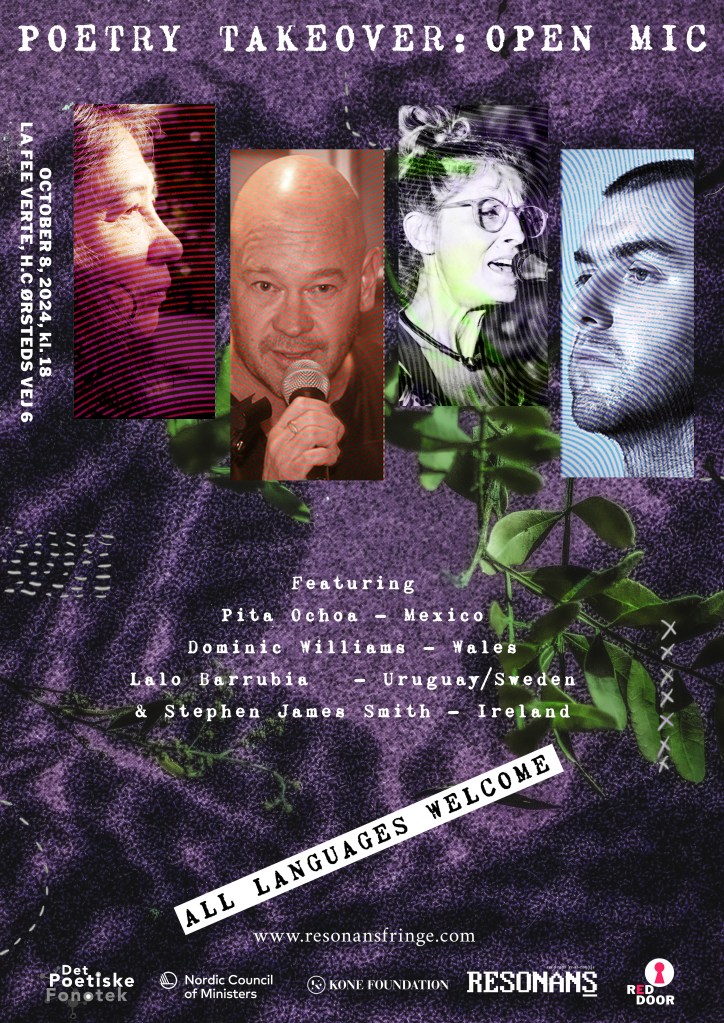 Dominic Williams is a poet, a performer and creative mentor. He is one half of the improvised spoken-word and movement act, “Your Strangest Friend”, with contemporary dancer Stina Nilsson and part of the FYD collective, contemporary artists from Serbia, Sweden, Croatia and Wales. He is a poetry editor and has cooperated with poets translating work from Bengali, Turkish, Serbian and Swedish. In summer 2022 a vinyl album was released, “Poetry is Dead”, which includes some of Dominic’s poetry accompanied by a Swedish three-piece punk band.